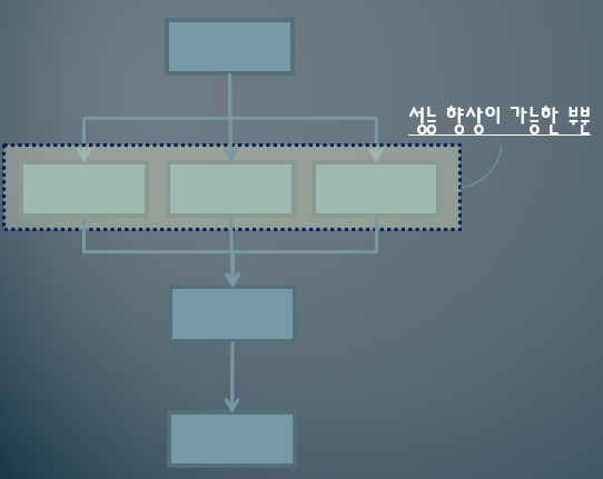 위의 예에서 각각의 네모는 동일한 처리량의 크기를 나타내고 한 행을 한 단계로 가정하겠습니다. 위의 예를 보면 직관적으로 2번째 단계의 3개 네모를 동시에 실행한다면, 3개의 코어가 각 1개씩 실행한다고 했을 때 성능이 향상된다는 것을 알 수 있습니다. 위의 예에서 동시에 실행하여 성능을 향상할 수 있는 부분은 2단계뿐입니다. 암달의 법칙으로 위의 예를 풀어보면 아래와 같습니다.