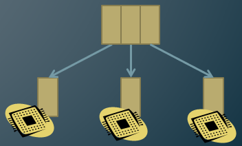 3개의 코어가 3개의 함수를 각각 실행하는 예를 살펴볼 수 있습니다. 위의 그림의 예는 파이프닝 예를 나타낸 것입니다. 각각의 파이프 함수가 데이터를 가공하여 다음 파이프 함수에 데이터를 넘기는 형태입니다. 각각의 파이프 함수를 각각의 프로세스에 할당하여 N배의 성능향상을 추구할 수 있습니다.